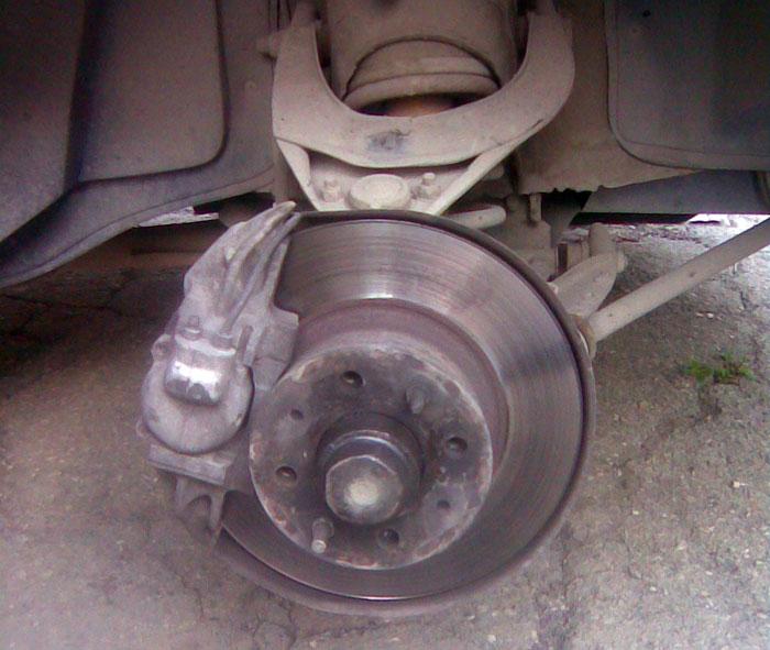 Для начала снимаем колесо, думаю нет необходимости расписывать весь процесс, балоневый ключик в помощь, домкрат и вперед с песней. Рекомендую всегда при проведении работ такого рода не полагаться на надежность ручника и передачи а положить чего нить под колеса дабы машинка не уехала прямо вам на голову… Итак, сняли колесо: